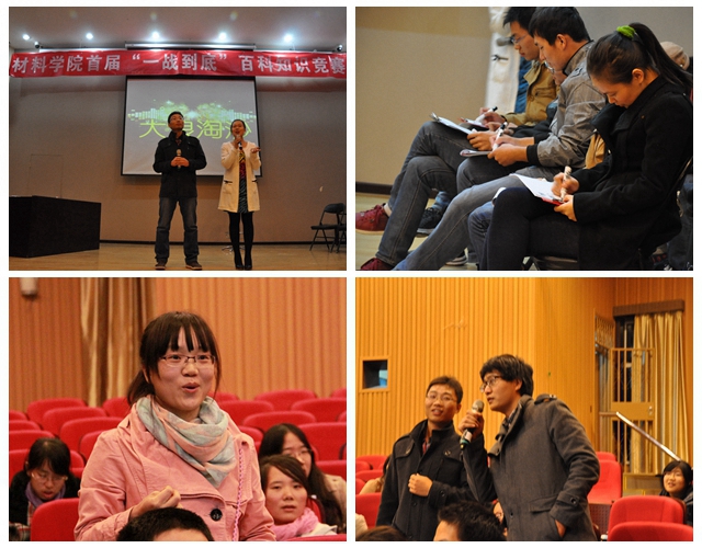 2013年11月3号18:00,304永利集团官网入口首届“一战到底”百科知识竞赛在七号楼报告厅拉开帷幕,此次活动由304永利集团官网入口研究生会主办,304永利集团官网入口党委副书记副院长张舰月、304永利集团官网入口团委书记刘艳、团委副书记张博文、兼职辅导员常云鹏出席活动。